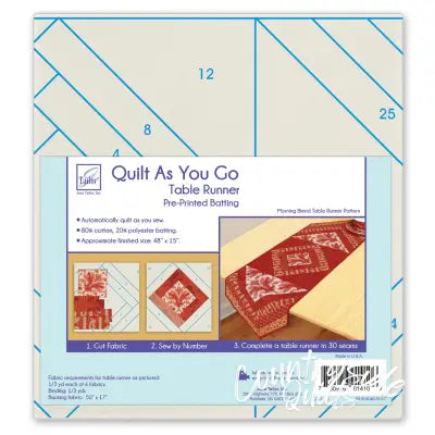 Afficher tous les détailsCreate the Morning Blend table runner pattern with this Quilt As You Go Pre-Printed Batting. Automatically quilt as you sew. 80% cotton, 20% polyes...