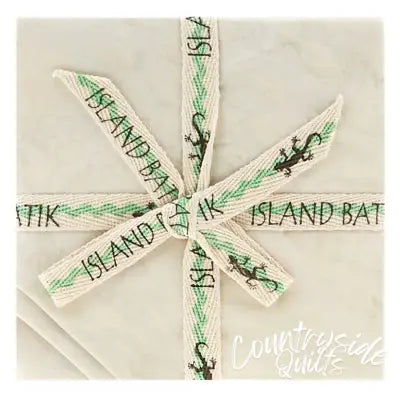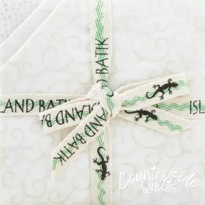 Afficher tous les détailsThis fabric item features a rich, dark green batik design, beautifully accented with a natural ribbon that has a charming lizard print, adding a to...