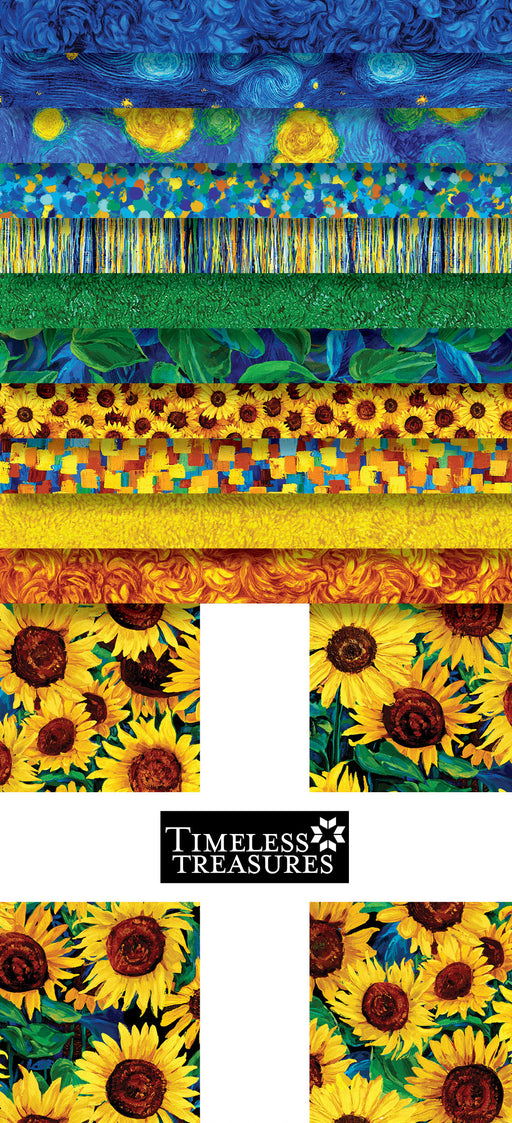 Afficher tous les détailsThis vibrant bundle of 2-1/2 inch strips features a stunning array of designs, from bold sunflowers to abstract patterns inspired by Vincent v...