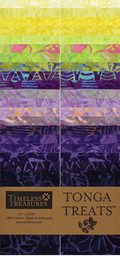 Afficher tous les détailsThis vibrant bundle of 2-1/2 inch strips features a stunning array of Tonga Batik patterns, ranging from intricate floral and leaf designs to ...