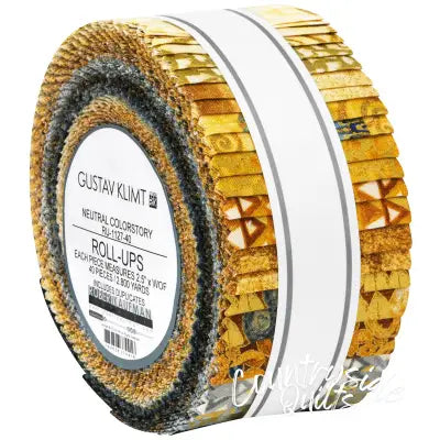Afficher tous les détailsThis fabric roll features 2.5-inch strips of 100% cotton, inspired by the intricate and elegant designs of Gustav Klimt. The neutral palette with g...