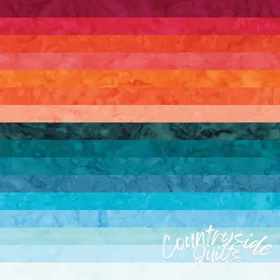 Afficher tous les détailsThis vibrant bundle of fabric features 2-1/2 inch strips of 100% cotton, showcasing a stunning array of hand-dyed batik patterns in warm hues rangi...