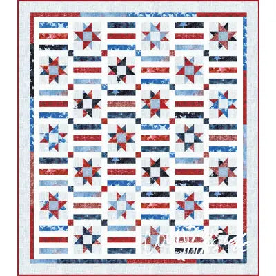 Afficher tous les détailsThis quilt kit features a stunning design with a patriotic theme, showcasing a pattern of stars and stripes in vibrant red, white, and blue. The st...