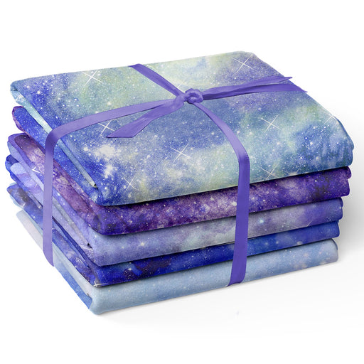 Afficher tous les détailsThis enchanting 5-piece fabric bundle features a celestial theme, with each yard showcasing a dreamy, star-filled sky in various shades of blu...