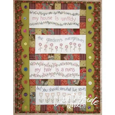 Wall Hanging finished size: 13in x 17in Lines of Embroidery; my house is untidy the garden's overgrown my hair is a mess but you should see wh...