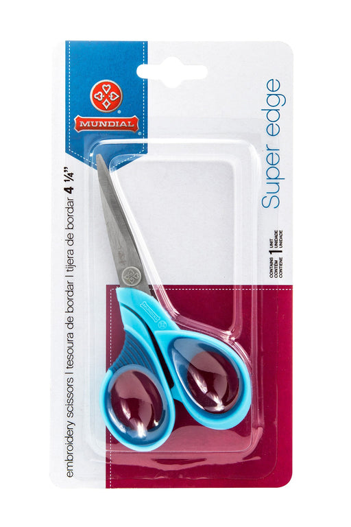 Afficher tous les détailsSuper edge 4-1/4in Embroidery Scissors - Light blue handles with dark blue soft comfort grip- stainless steel blades with adjustable pivot - p...