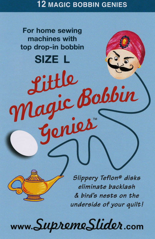 Afficher tous les détailsOur easy-to-use Little Genie Magic Bobbins simply drop into your bobbin case, and you're ready to go! Eliminates the backlash and bird's nests...