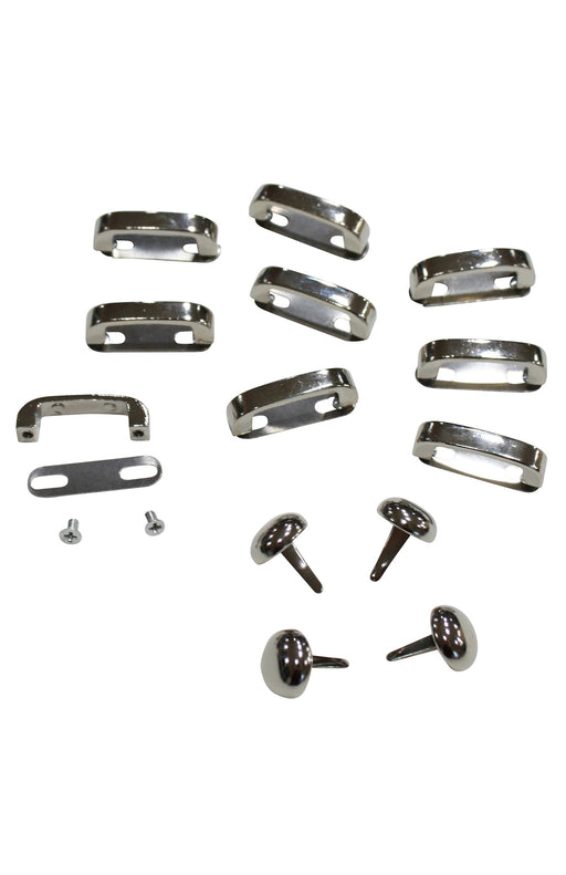 Afficher tous les détailsThis kit contains eight handle bands and four bag feet in a nickel finish. All the hardware you need to complete the sleek styling of the Hett...