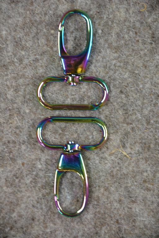 Afficher tous les détailsThis spring loaded swivel clip has a 1-1/4in opening. Packaged two per pack. Color: Rainbow Made of: Metal Use: Bag Hardware Size: 1.25in Incl...