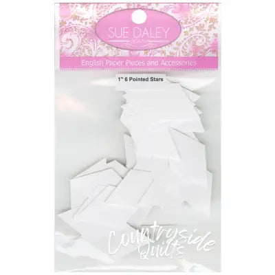 Sue Daley's English paper piecing papers are die-cut to ensure precision from a high quality silk coated card. This allows you to remove the fabric...
