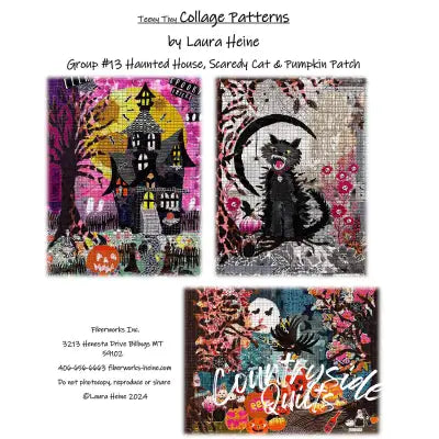 Teeny Tiny Collage Pattern Group #13 Haunted House, Scaredy Cat & Pumpkin Patch by Laura Heine. These are the perfect patterns for Fall. Pumpki...