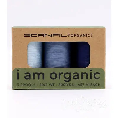 Afficher tous les détailsDenim Blues 50wt 3 spool set. SCANFIL® Organic Cotton Thread Set comes with 3 spools each with 500 yards of 50/2 Extra Long Staple Organic Pima cot...