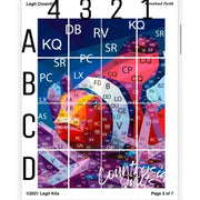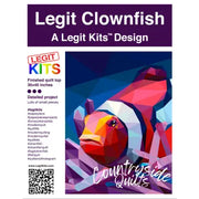 "Is it safe to come out?" Take the plunge with Legit Clownfish, a premium design with everything a foundation paper piece quilter wants.  This kit contains color maps, fabric lists, an assembly guide, the full pattern printed on foundation paper, and 76 different shades of Robert Kaufman Kona Cotton Solids to complete this medium sized, 30 inch wide by 40 inch tall work of fiber art.  The 30x40 inch size is much larger, therefore less technical than the mini version of this design.  This size allows for a wall hanging, baby blanket, or use as a panel for a larger quilt.