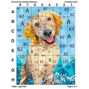 Who’s a good doggie? Everest the Retriever is paws down the most detailed Foundation Paper Pieced golden retriever quilt pattern ever made.  Lifelike eyes gaze happily as this smiling dog waits for the next activity.  Everest the Retriever is a premium design with everything a foundation paper piece quilter could want. This fully printed pack contains color maps, fabric lists, an assembly guide, and the full pattern.  The stunning finished quilt top measures 60 inches wide by 80 inches long.