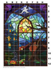 Halloween by Cole's Quilts brings stain glass quilt designs to whole new spooky level. Featuring a haunted house, ghosts, bats, a black cat, jack o'lantern, this 63x90" top has it all and is perfect for Halloween or even year round display.