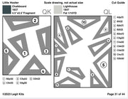 This kit contains color maps, fabric lists, an assembly guide, the full pattern printed on foundation paper, and clearly labeled, ample cuts of 75 different shades of Robert Kaufman Kona Cotton Solids to complete this medium sized, 30 inch wide by 40 inch long quilt top.