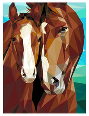 Horses have been along side us for thousands of years, pulling chariots in races, charging into battle, helping farmers plow their fields and now being the loving and gentle companion animals of today.  It's hard to imagine history without a horse by our side.  Mare & Foal shows the motherly love and tenderness these animals have. Finished size is 60"x80"