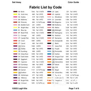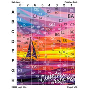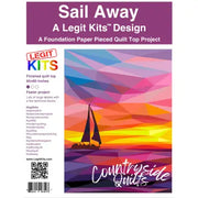 Cast off the dock lines and steady your course.  Sail Away depicts a perfect cruise with vivid colors.  This printed pattern contains color maps, fabric lists, an assembly guide, the full pattern printed on foundation paper, and the fabric list of all 63 shades of Robert Kaufman Kona Cotton Solids required to complete this full sized, 60 inch wide by 80 inch tall quilt top.