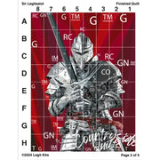 Sir Legitsalot brings to mind King Arthur and saving princesses.  But these days he is on the quest for the dragon that has been terrorizing the quilters of North Full Bobbinhamshire. This design is created with rich reds and shades of grey to give his armor depth and movement. This is the perfect statement piece for history buffs and gamers or as a companion piece to Toasty the Dragon. Don't let Sir Legitsalot go on quests without you!
